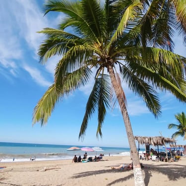 Lo de Marcos Mexico, just north of Puerta Vallarata is a place where you can enjoy the essence of a true Mexican town. Wide, calm streets, colorful flowering trees, bright art work painted throughout town, fishermen heading out early morning with their boats and nets to catch the local fish of the day. Surrounded by green hills and whimsical rocks contrasting beautifully with the intense blue sky and warm Pacific waters. Playa Lo de Marcos has just been rated one of Nayarit’s cleanest beaches with the most swimmable water.